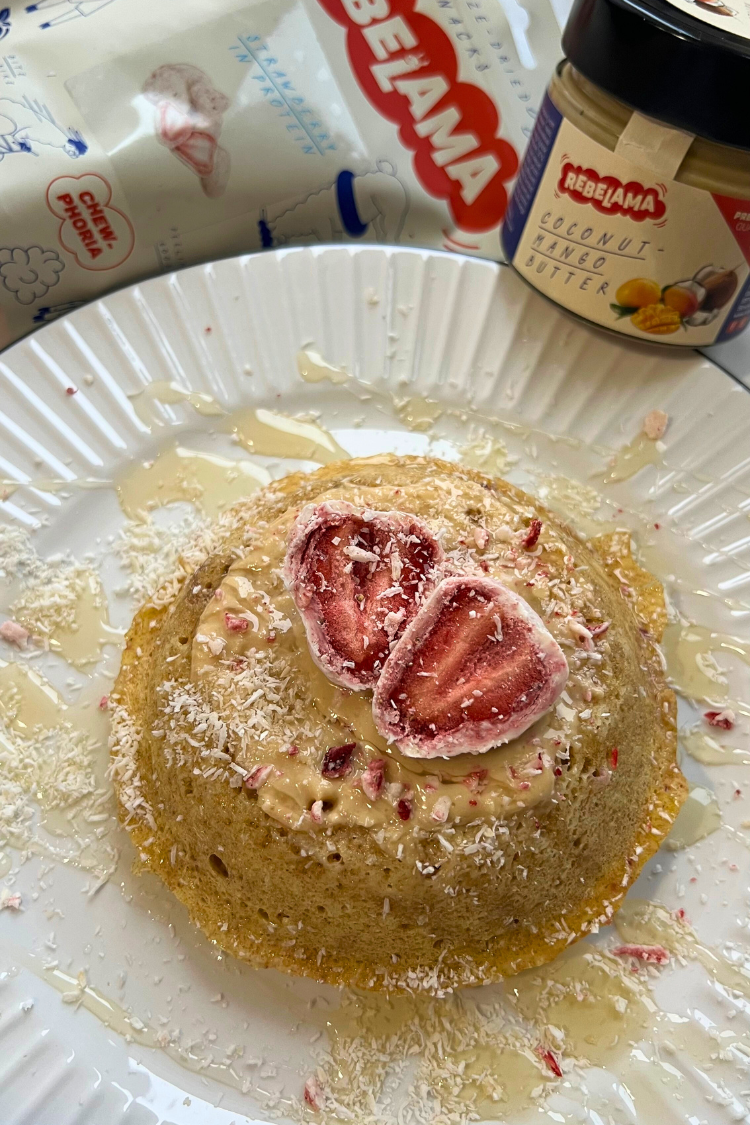 Hľadáte rýchly proteínový dezert, ktorý je hotový za pár minút? Tento jahodovo-kokosový mug cake je skvelá voľba! Je plný bielkovín, vlákniny a chuti a je ideálny ako fit snack alebo rýchle zdravé raňajky. S lyofilizovanými jahodami a krémovým kešu maslom je to neodolateľná pochúťka.