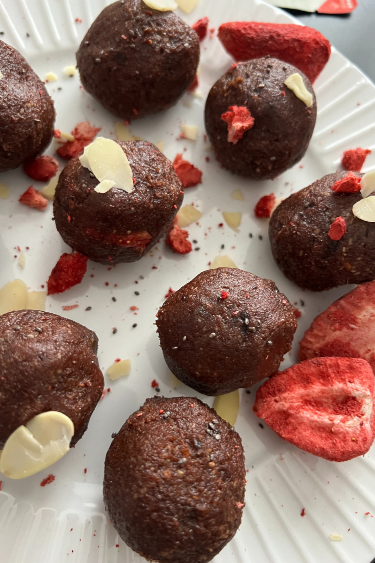 Tieto Kešu ďatľové guličky s lyofilizovanými jahodami sú dokonalý raw dezert bez výčitiek. Sú plné energie, chutné a rýchle na prípravu. Vyskúšajte tento jednoduchý recept na guličky bez pečenia a doprajte si zdravú a ovocnú pochúťku.